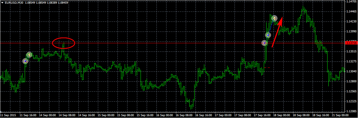 3. Входы «по рынку» третьими участниками рынка, которые увидели пробой уровня и последовавший за ним импульс и вошли в ожидании продолжения движения.