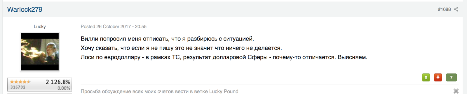 Интересная ситуация сложилась на счетах управляющего счетами Lucky Pound в Альпари.