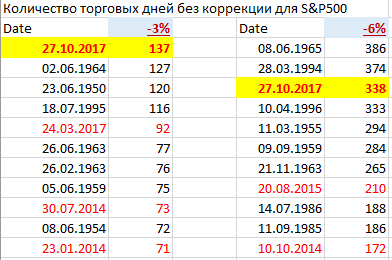 Количество дней без 6% коррекции пока не рекордное, но тоже уже близко к историческим максимумам.