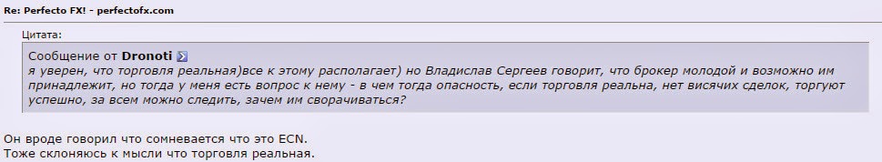 Perfecto FX – компания, предоставляющая услуги реального доверительного управления на рынке Форекс. На данный момент информации по компании в Рунете мало, потому что Perfecto FX не так давно вышли на российский рынок, а доходность инвестиционных предложений не может конкурировать с крупными хайпами. Как следствие, количество партнёров компании невелико, потому что заниматься раскруткой Perfecto менее выгодно, чем пиарить всем известные хайпы. Здесь налицо описанный в одной из статей «конфликт интересов» между инвесторами и теми, кто освещает инвестиционные проекты.