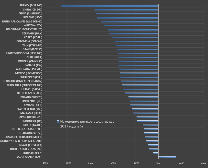 Прошедший год принёс убытки инвесторам практически всех финансовых рынков: упали фондовые индексы всего мира (график результатов с начала года см. ниже); испытал сильное падение криптовалютный рынок (наиболее известные криптовалюты упали с начала года на 70–90 %); возникли сложности в торговле большинства масштабируемых торговых систем на Форексе.