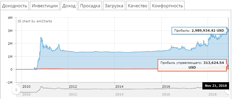 Ну и самое «интересное» из новшеств это добавление информации по динамике заработанной прибыли на странице анализа. Эта информация считается как по отдельным счетам так и по совокупной статистики управляющих.