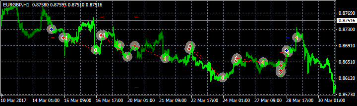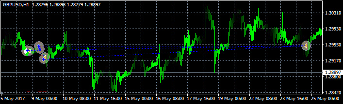 Здесь показаны входы на движении 18 апреля. Сначала пара GBPUSD ушла вниз, но затем резко развернулась и пошла вверх (на неожиданных словах известного британского политика). Сначала получен убыток на продажах, затем получена прибыль на продолжении движения вверх.