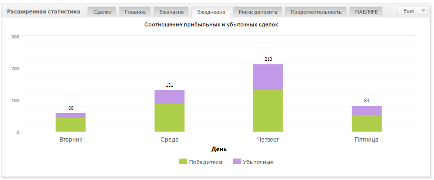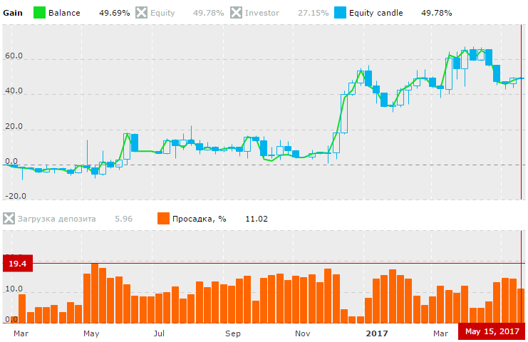 Средняя прибыль на самом деле несколько меньше 36 пунктов, указанное в мониторинге myfxbook управляющего значение немного завышено, по-видимому, за счет хорошего результата последнего года. Реально средняя прибыль лишь немного превышает средний убыток, а прибыльность достигается не за счет большого отношения прибыли к убытку, а за счет достаточно большого процента прибыльных сделок.
