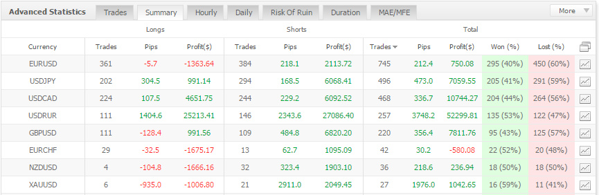 Косвенно это свидетельствует о том, что эффективность не-пипсовочных торговых методов у Stability выше. Свой вклад здесь, конечно, вносят и сработавшие рано стопы, однако, судя по сделкам, доля этих стопов невелика, и общая доходность пипсовки в таком случае отрицательная. Не буду здесь делать далекоидущих выводов (хотя всем понятно, что с такой пипсовки идут большие обороты, а прибыль партнеров идет в первую очередь с них) но со стороны польза внутридневной пипсовки в торговле далеко не очевидна.