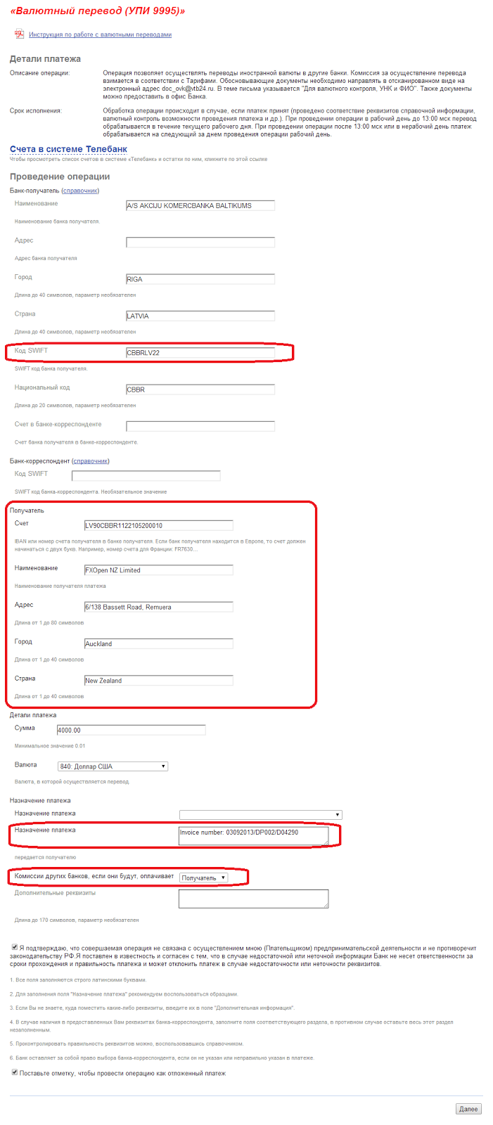 После того как вы завели себе валютный счёт и пополнили его, остается только создать распоряжение на валютный перевод. Во всех банках и интернет-банках этот документ заполняется почти одинаково. В заполнении этого документа нам поможет инвойс.