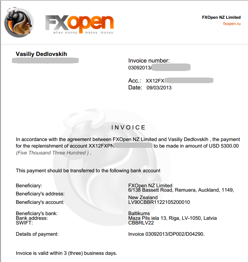 И самым прямым способом пополнения лицевого/торгового счёта из всех возможных будет непосредственный перевод с вашего валютного банковского счёта на банковский счёт соответствующей организации. Юридически, в случае чего, такой документ будет прямым доказательством того, что вы действительно переводили свои средства на счёт соответствующей компании.