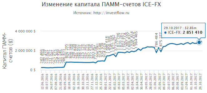 Инвесторский капитал площадки ICE FX по-прежнему плавно растёт и уже подошёл вплотную к $3 млн: