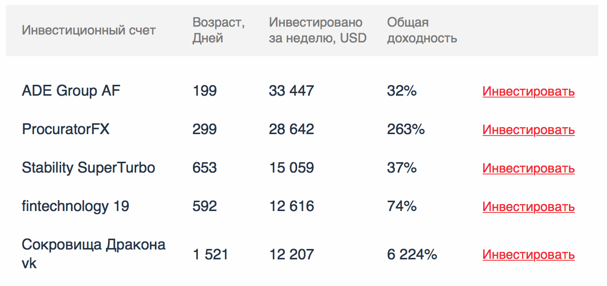 Думаю, что без наличия хороших управляющих и целенаправленной раскрутки этих управляющих как самой площадкой, так и сторонними агентами едва ли стоит ожидать какого-то заметного роста КИ ПАММ-площадки брокера, и его ждёт медленная стагнация. Сейчас средства инвесторы заливают совсем не в те счета, что нужно. Так, самыми популярными за последнюю неделю стали такие счета: