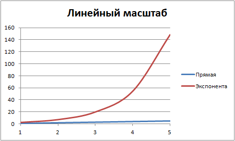 Если на первом графике прямую с трудом можно разглядеть внизу, то на втором мы можем видеть, как меняется характер как одной, так и другой кривой.