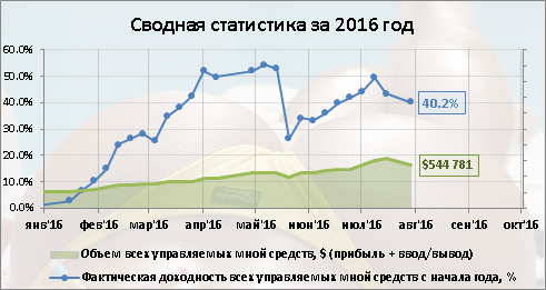 | доходность и объем управляемого портфеля по состоянию на 01.08.2016 | ||||||