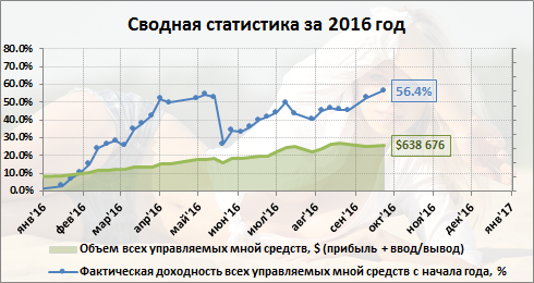 | доходность и объем управляемого портфеля по состоянию на 26.09.2016 | ||||||