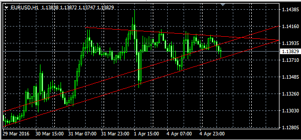 В классической интерпретации эта фигура прорывается в сторону текущего тренда, хотя цена вполне может дорисовать что-нибудь и сформировать разворотную фигуру. С другой стороны до конца этой недели вообще не ожидается никаких важных новостей, поэтому прямого влияния фундаментальных факторов на цену не должно быть. Другими словами, технически, нет никаких признаков того, что цена развернется и пойдет в низ.