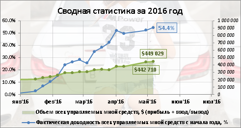 | доходность и объем управляемого портфеля по состоянию на 09.05.2016 | ||||||
