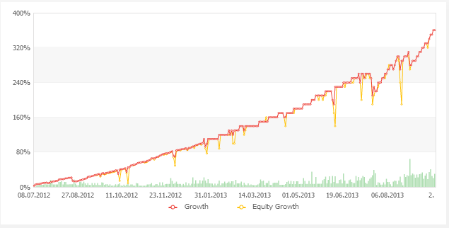 Данный ПАММ-счёт на общих основаниях попал ко мне в инвестиционный портфель — его торговые показатели удовлетворяют мою модель расчёта оптимлаьных ПАММ-портфелей.