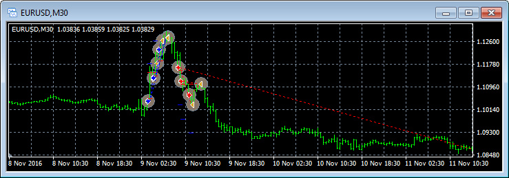 Разумеется, что кривая доходности при такой торговле выглядит непривлекательно — полгода-год болтаемся возле нуля, потом в течение короткого времени «выстреливаем» резко вверх, поймав импульсы, являющиеся началом больших трендов. В связи с такой логикой встает вопрос о целесообразности отключения торговли во время событий наподобие британского референдума и выборов в США, поскольку, к примеру, во время выборов можно было наблюдать такую картину: