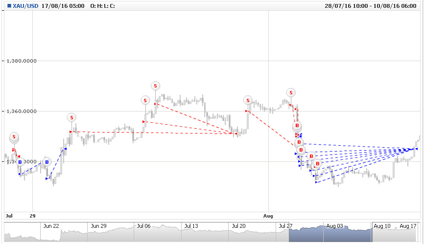 Чтобы читателям было понятно, что это за зверь такой — сеточная торговля, покажу сначала, как выглядят сделки таких трейдеров на графике: