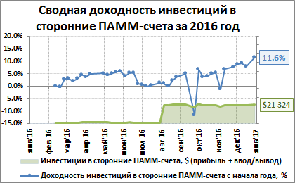 Прошедший 2016 год мной в основном был посвящен торговой системе боллинджер, в сторонние инвестиционные активы я инвестировал относительно не много, за ними я больше наблюдал чем рассматривал их как варианты инвестирования.
